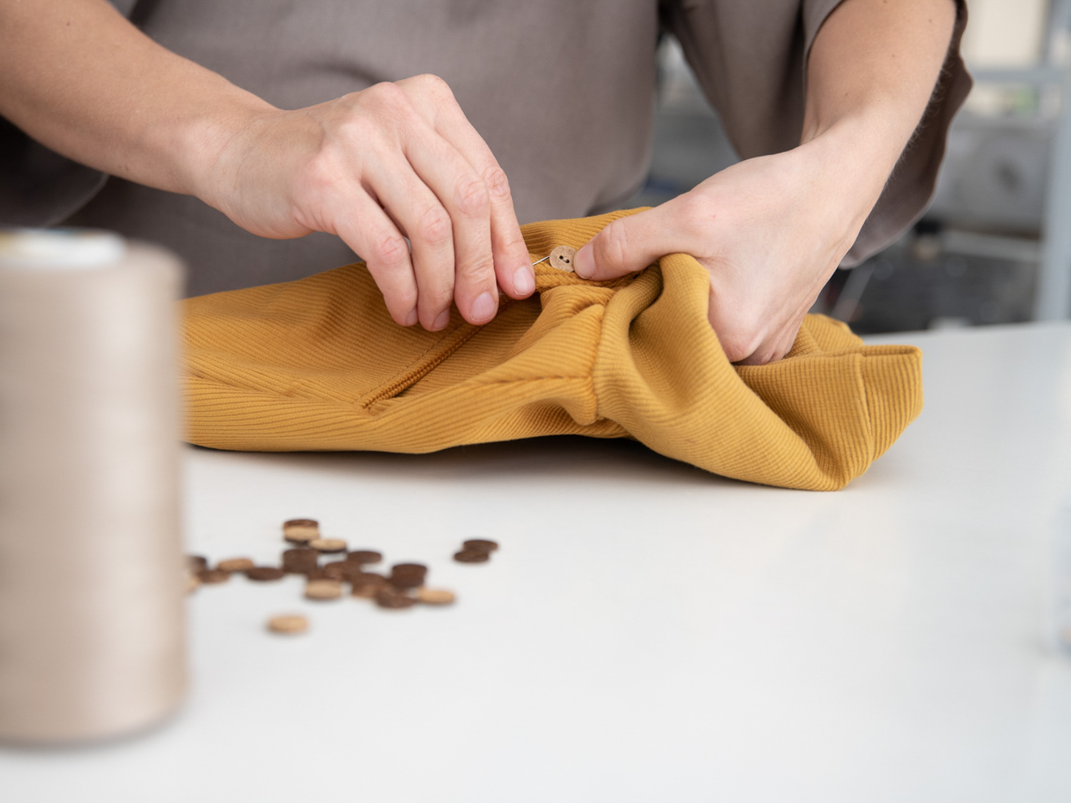 For us, sustainability is not a badge, but a way of life: we produce in Berlin, most of our fabrics come from Germany, they are subject to strict quality controls and meet high social and ecological standards. There is no overproduction or textile waste with us: faulty items are repaired and/or offered at a lower price, used favorites can be found in our second-hand department. We ship completely plastic-free (with DHL GoGreen) and even our postcards, tags etc. are produced by regional eco-companies.