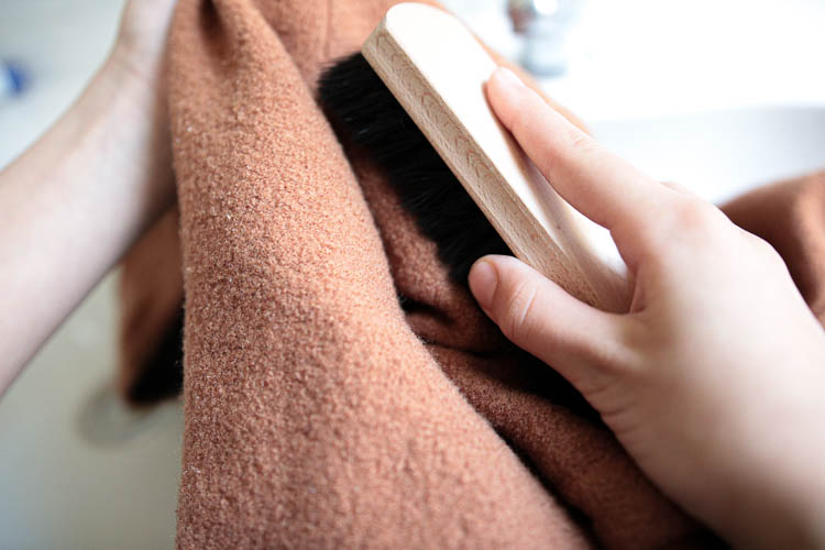 Thanks to lanolin, new wool has self-cleaning properties. Regular washing is therefore not necessary. Any dirt can be carefully rubbed off with a damp cloth. If there is mud on the clothing, let it dry first and then remove it with a soft brush. We offer the famous miracle brush for this purpose. Stubborn odors can be removed by airing out in the open air.