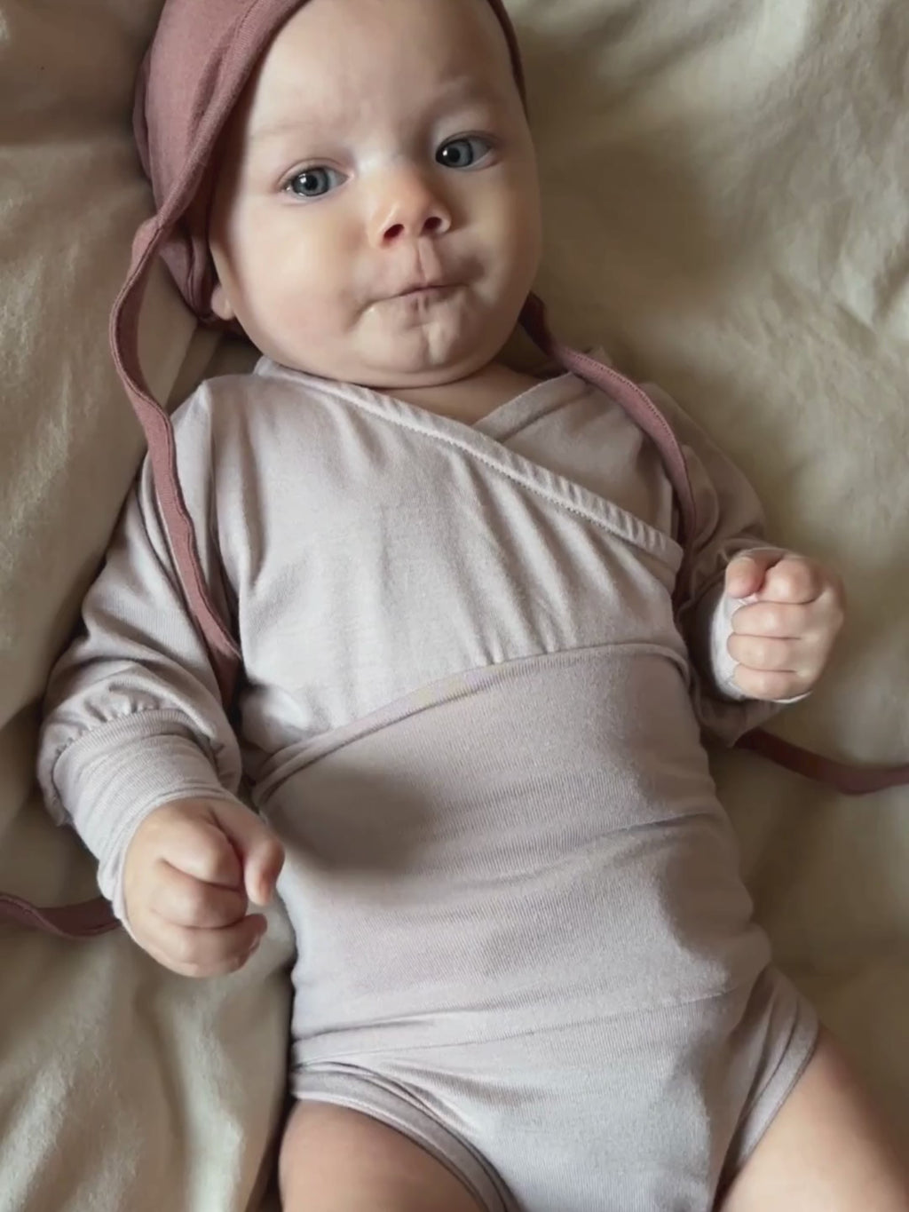 Le testoline dei neonati hanno bisogno di calore e protezione, e queste cuffie morbidissime sono l'ideale. Il loro tessuto elastico in micromodal e cashmere riscalda senza far sudare e si adatta delicatamente alla testa. Grazie ai lacci extra lunghi, la cuffia si può legare. Grazie al materiale pregiato in misto cashmere,è molto morbida ed elastica e cresce con il bambino per molto tempo. Si abbina perfettamente al Loopbody in misto cashmere e ai pantaloni per neonati in misto cashmere. Viene cucita a mano a Berlino utilizzando i ritagli di tessuto del Loopbody.