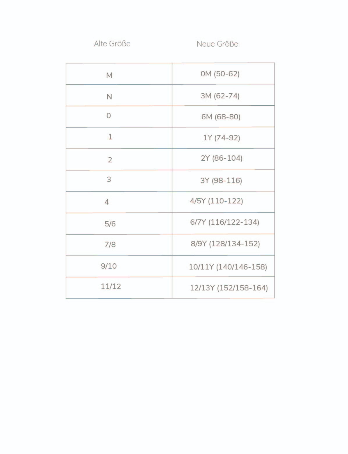 Hier findest du die Größentabelle der alten Größen zum Vergleich.