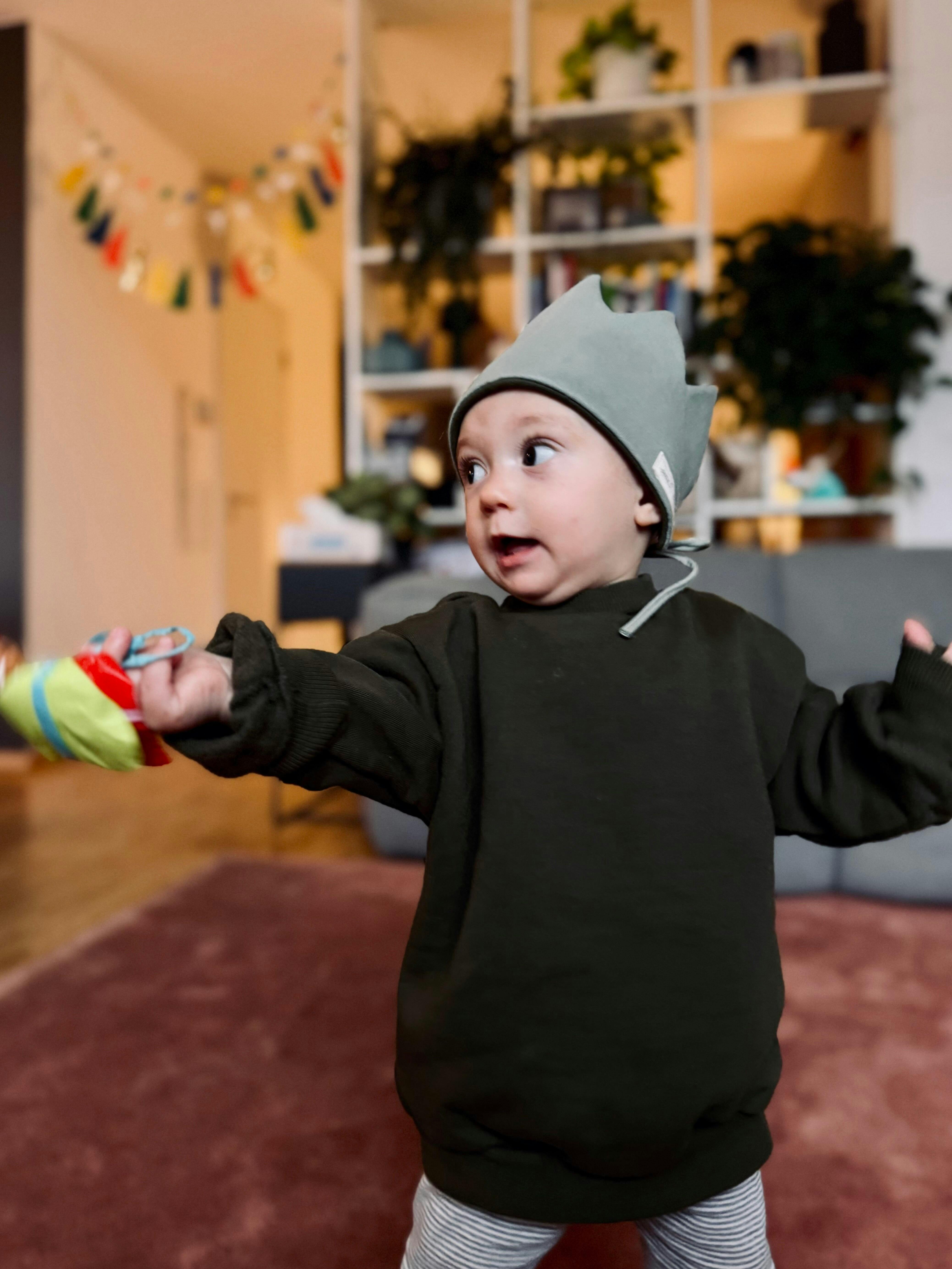 Unser Pulli aus weichem Bio-Sweat in der sanften Farbe Aqua ist der perfekte Alltagsbegleiter für Babys und Kinder. Ob für die Kita, den Spielplatz oder gemütliche Stunden zu Hause – dieser Pullover ist so angenehm zu tragen, dass er schnell zum Lieblingsstück wird.